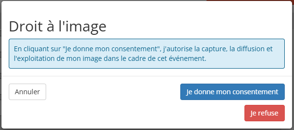 ℹ️ Le droit à l’image offre à vos participants la possibilité de vous donner ou non leur consentement pour que des images d’eux (photos et vidéos) soient capturées, diffusées et exploitées lors de votre événement.
