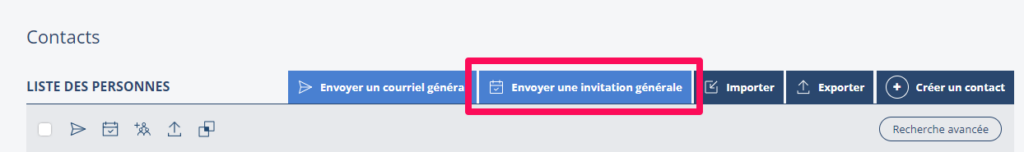- Cliquer sur Envoyer une invitation générale