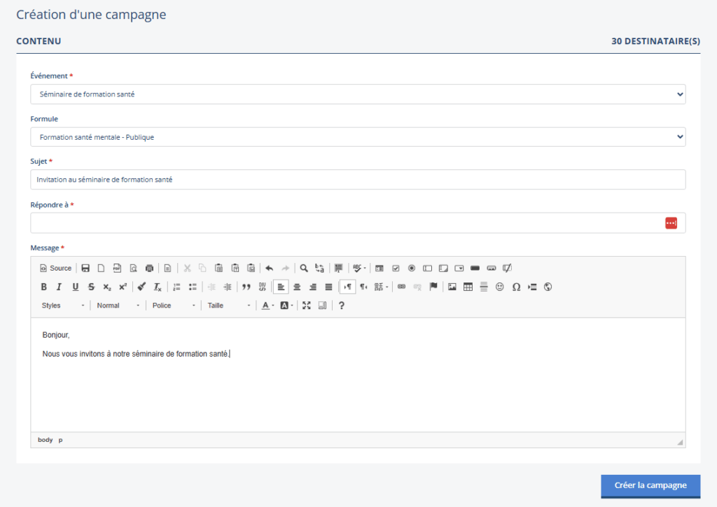 L’étape suivante va être de créer une campagne CRM qui va cibler les participants que vous souhaitez inviter à votre événement, ou à une formule distincte.