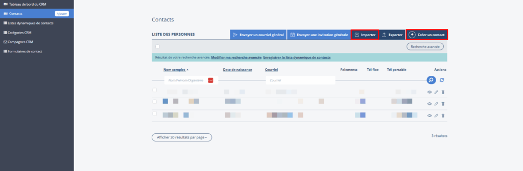 - Créer chaque contact manuellement en cliquant sur le bouton Créer un contact